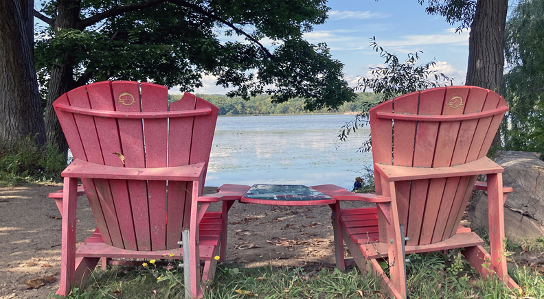 I’d stopped to sit in one of those red Muskoka chairs placed by Parks Canada. Several hundred are placed in twos, side-by-side, across our nation in places with a view. It’s where this Forrest Gump moment unfolded.