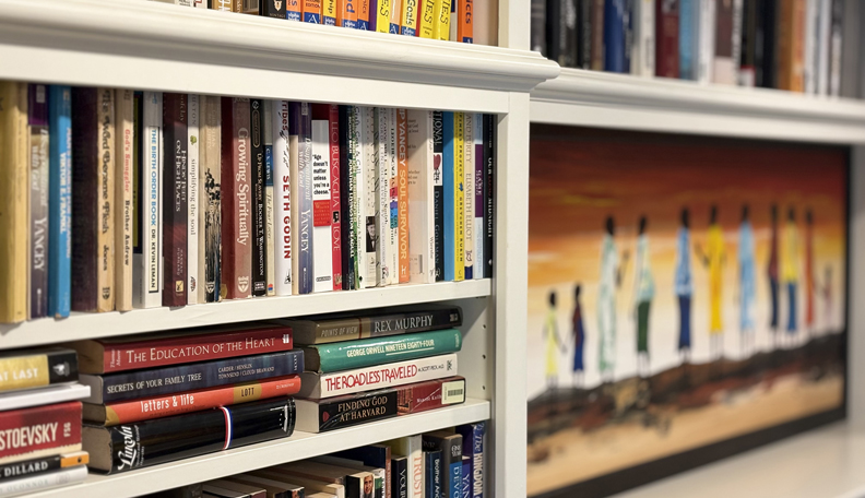 I read at night like I sip a glass of merlot. Or hot milk. Slowly. Then I’m easily out. My current night companion – moved to my bedside table from the downstairs bookshelves with the African painting – is “Fifth Business,” by Robertson Davies.